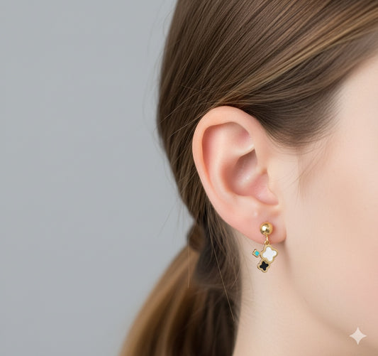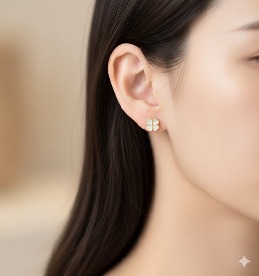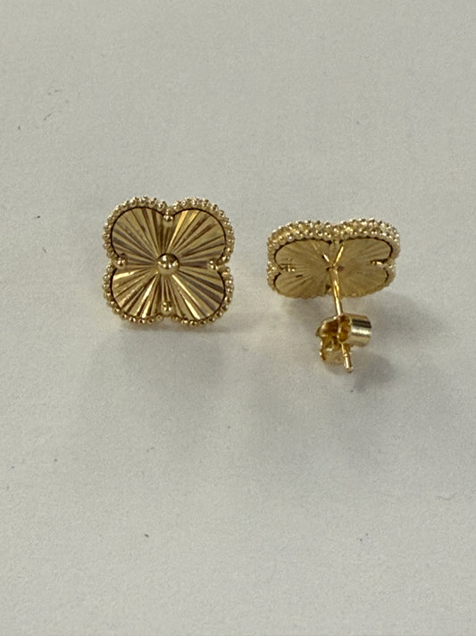 14K Gold Clover Shaped Studs Earrings