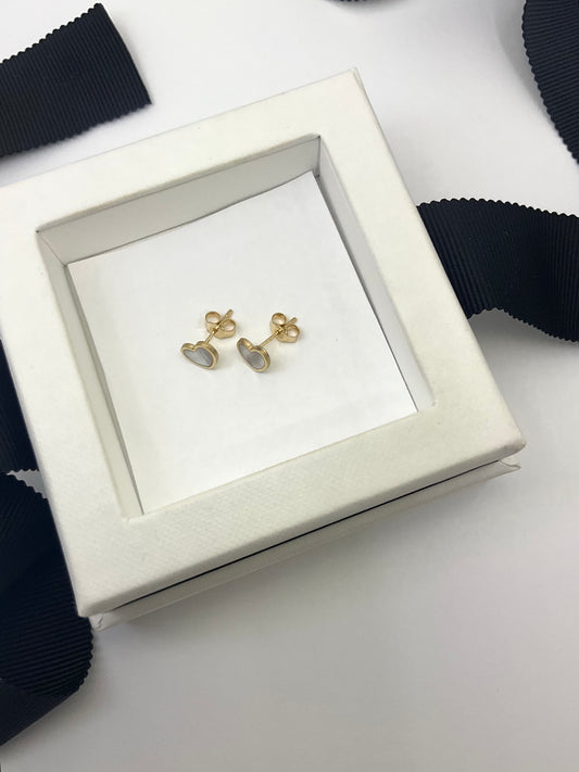 14K Gold Mother Pearl Heart Stud Earrings