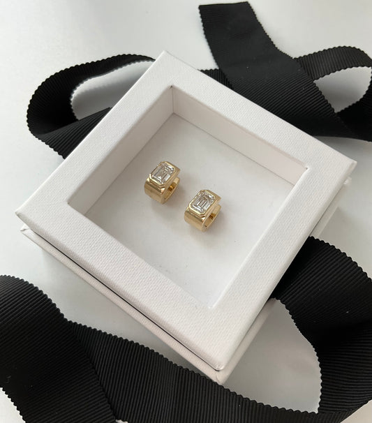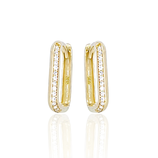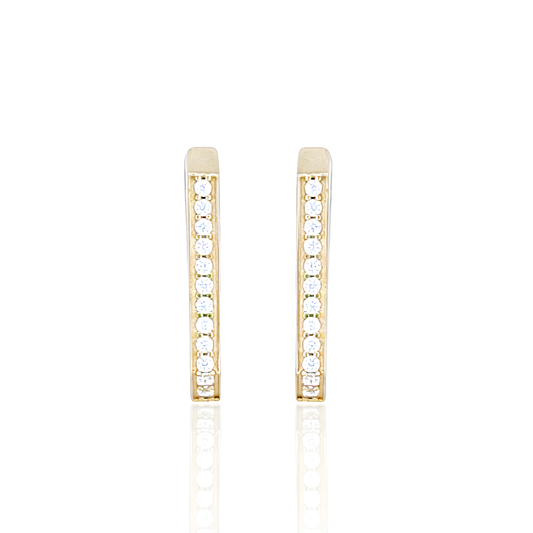 14K Squared Hoop Earrings with Cubic Zirconia