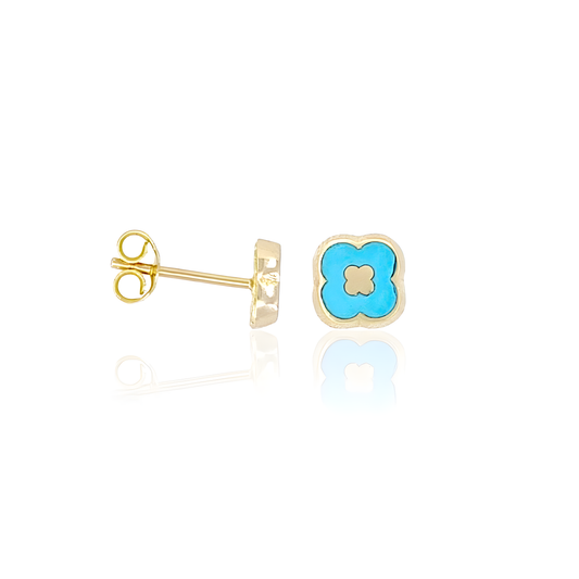 14K Gold Flower Turquoise Stud Earrings
