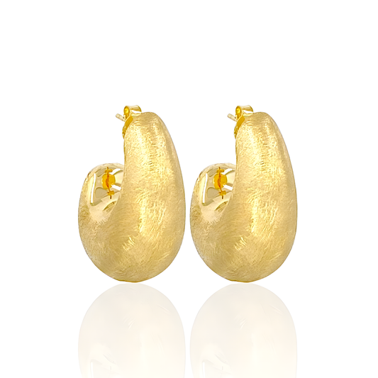14K Gold Satin Finished Сashew Hoop Earrings