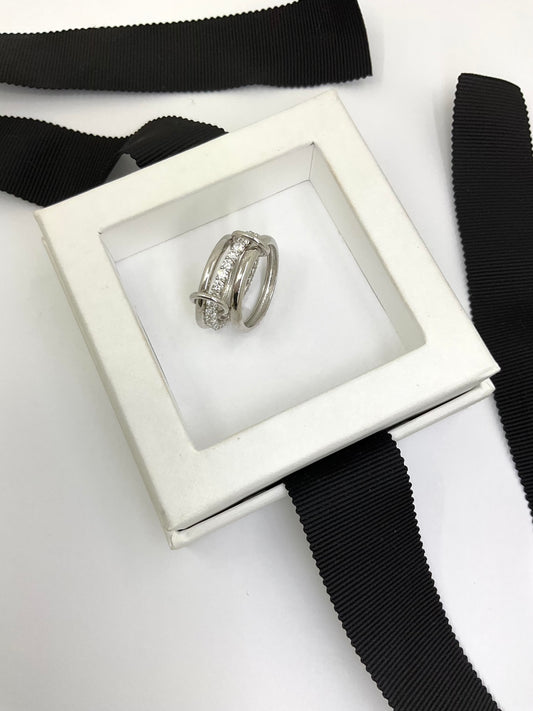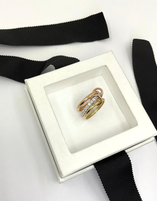 14ky 3 Solid Endless Ring with white topaz eternity band