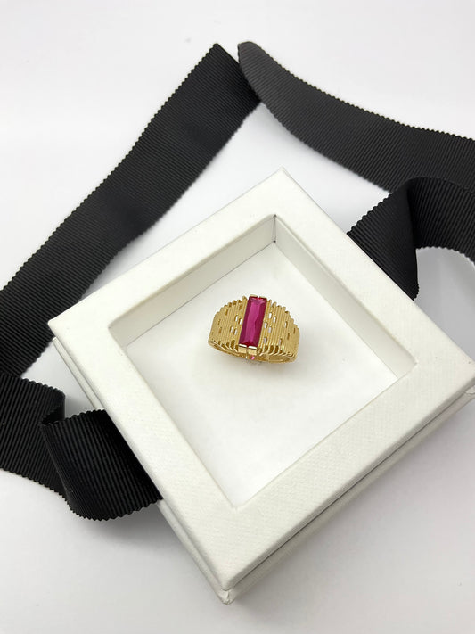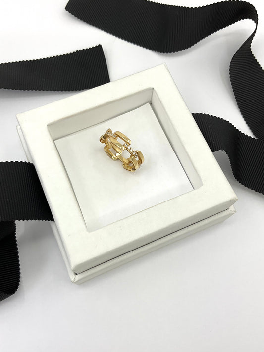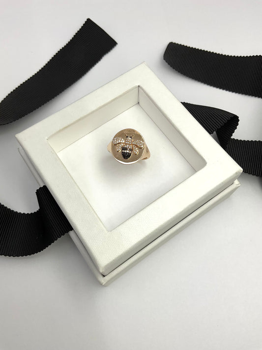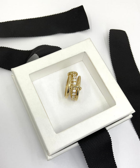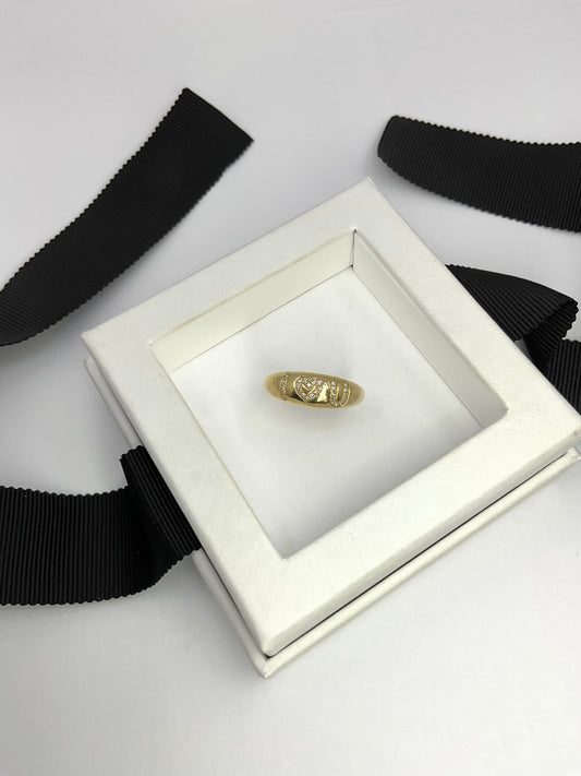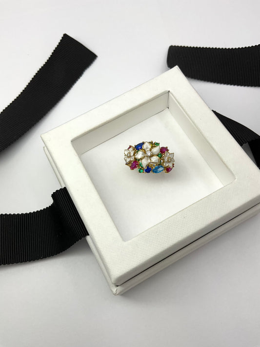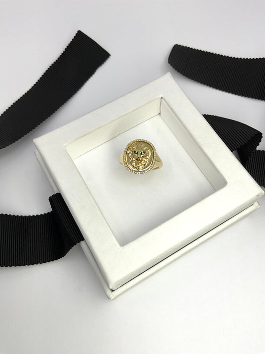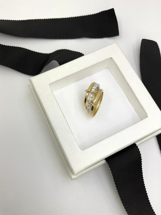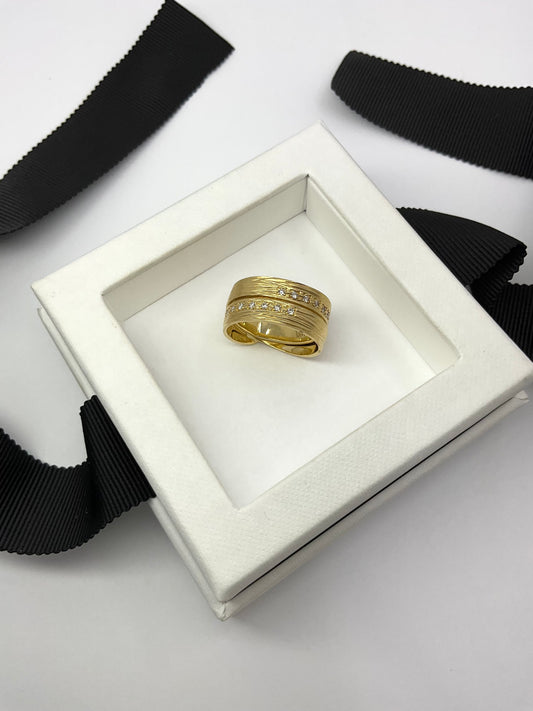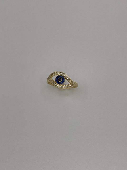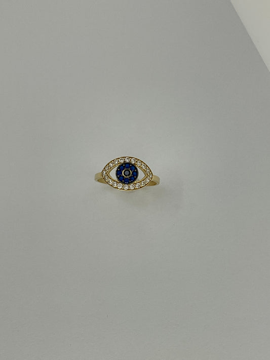 14ky Solid Gold Eye Ring with Blue and White Topaz