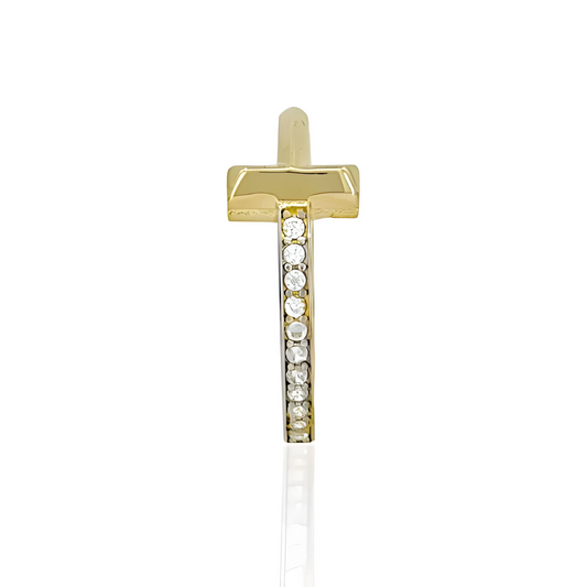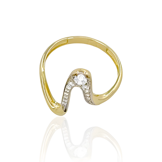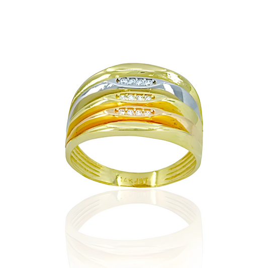 14k Solid Gold Almond Ring with Cubic Zirconia