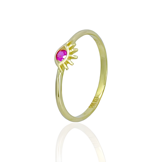 14k Solid Gold Evil Eye Ring with Colored Topaz