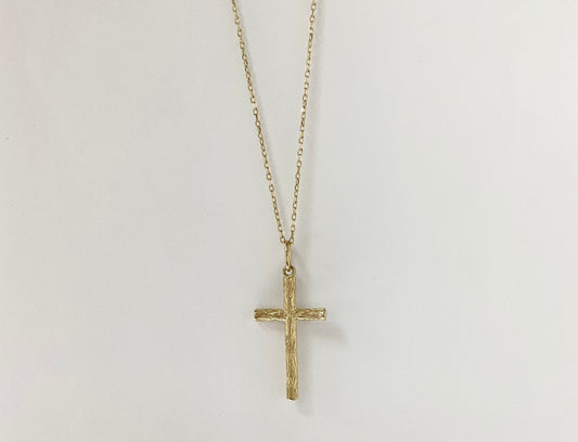 18K Solid Gold Woodgrain Textured Cross Pendant