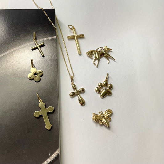 18K Gold Mini Cross Charm Pendant