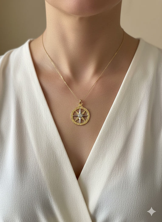 14K Gold Compass Rose Pendant