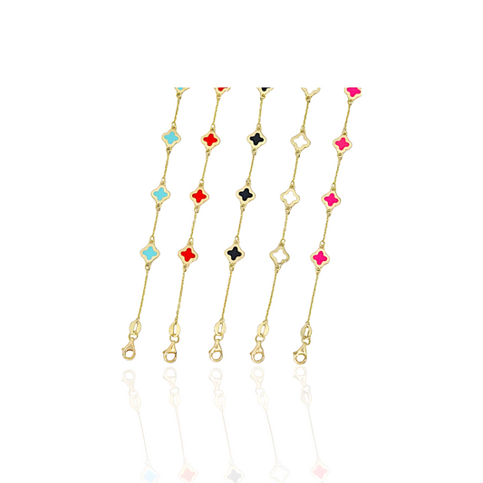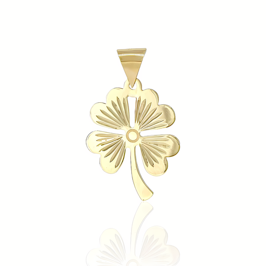 14K Gold Diamond Cut Flat Clover Charm Pendant