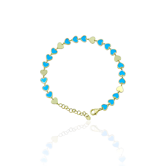 14K Gold Heart Bracelet with Natural Malachite and Turquoise