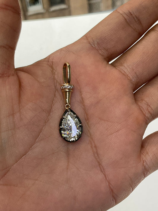14K Gold Lab Grown Diamond 3.29CT Pear Shape Pendant Georgian Victorian Setting