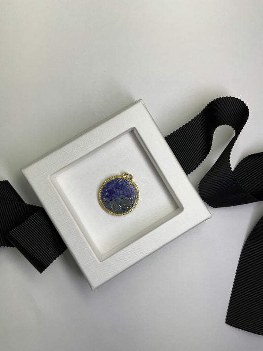 Gold Round Lapis Medallion Pendant with Diamond Cluster