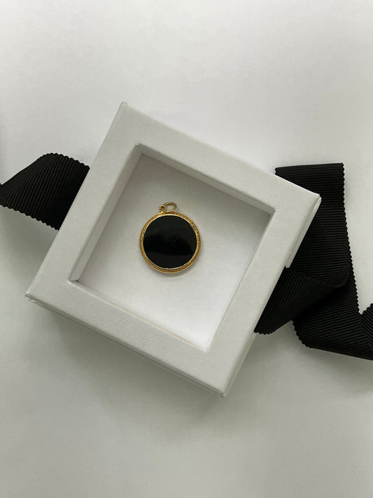 Gold Round Onyx Medallion Pendant with With Gold Moon And Diamond Star