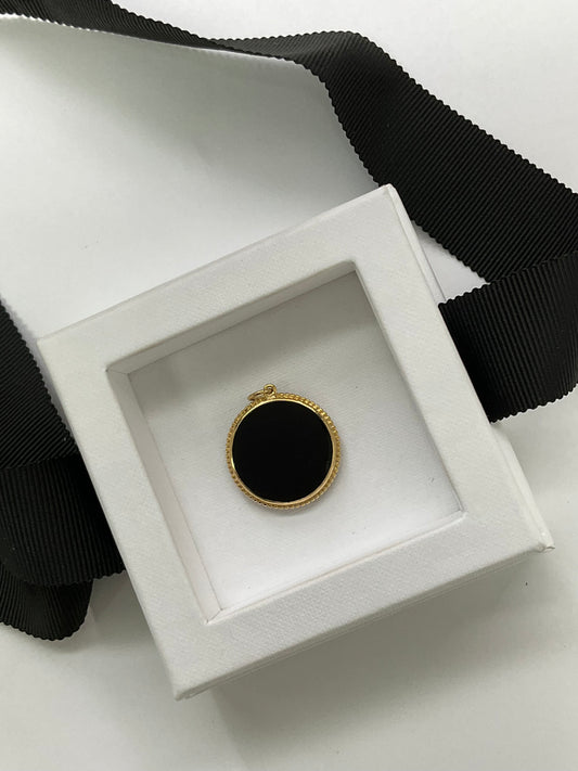 14K Gold Round Onyx Medallion Pendant with With Diamond Cluster