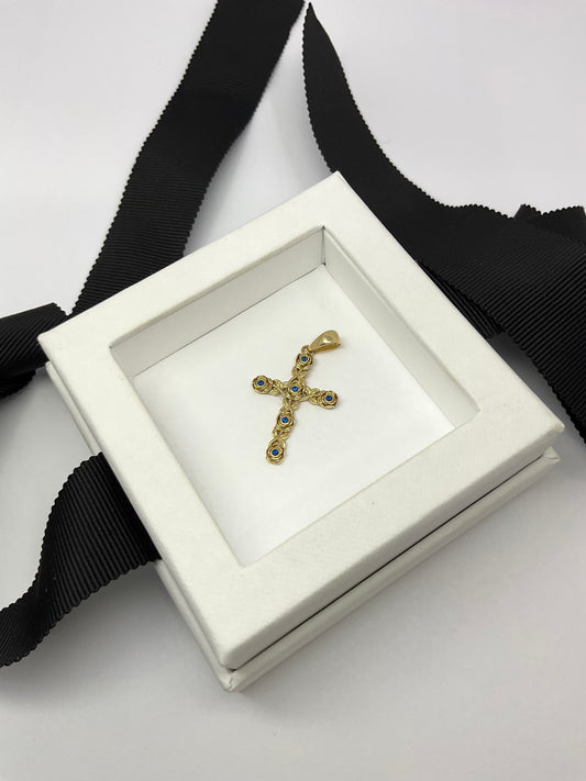 14KY Solid Gold Rose Cut Cross Pendant