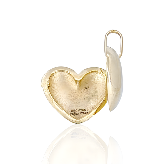 14K Gold Heart Locket Charm Pendant