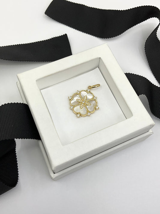 14K Gold Round Charm Pendant with Heart and Sunbeams
