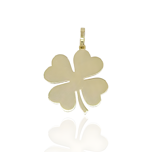 14K Gold Diamond Cut Flat Clover Charm Pendant