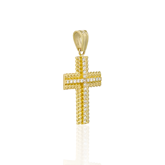 14K Gold Cross With Natural Diamonds