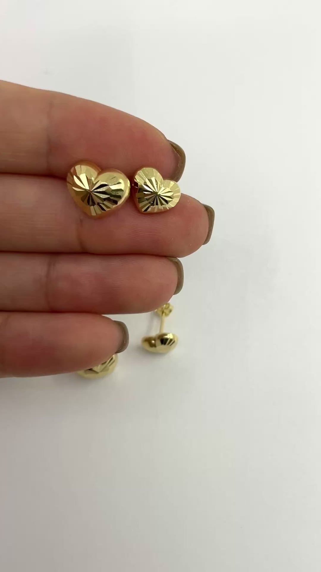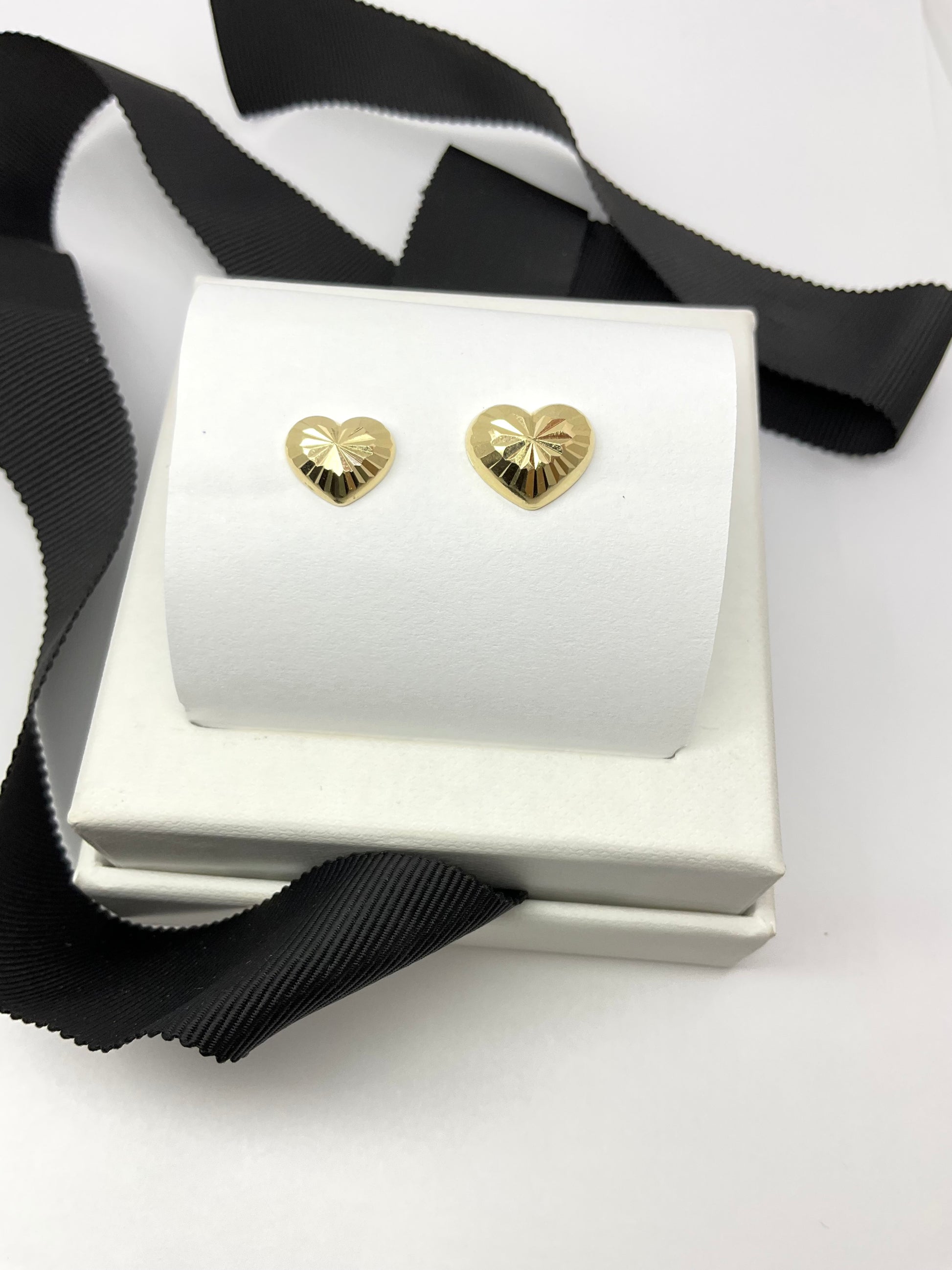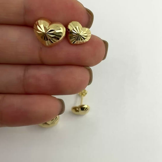14K Gold Heart Shaped Diamond Cut Earrings