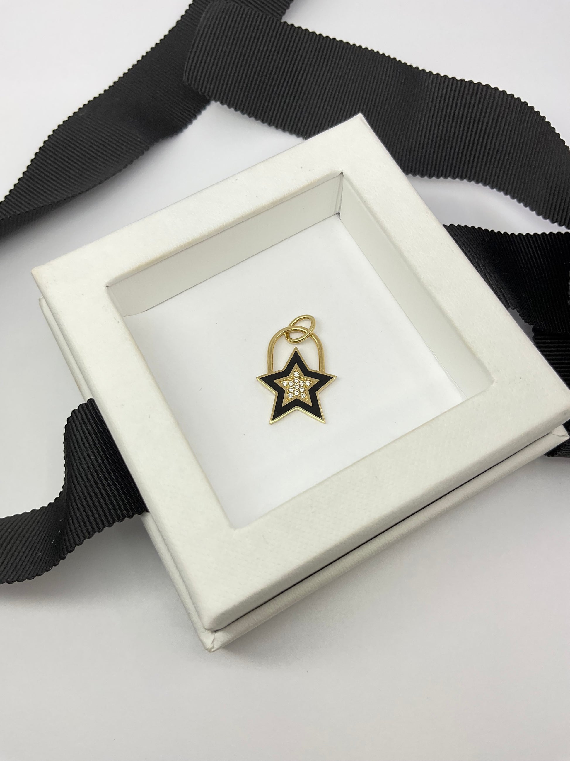 Shine like a star with this 14K Gold Enamel Star Charm Pendant! Made from high-quality gold and featuring a charming star design, this pendant will be the perfect accessory to add a touch of sparkly whimsy to any outfit. Perfect for the playful and quirky at heart.