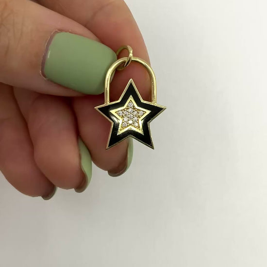 14K Gold Enamel Star Charm Pendant