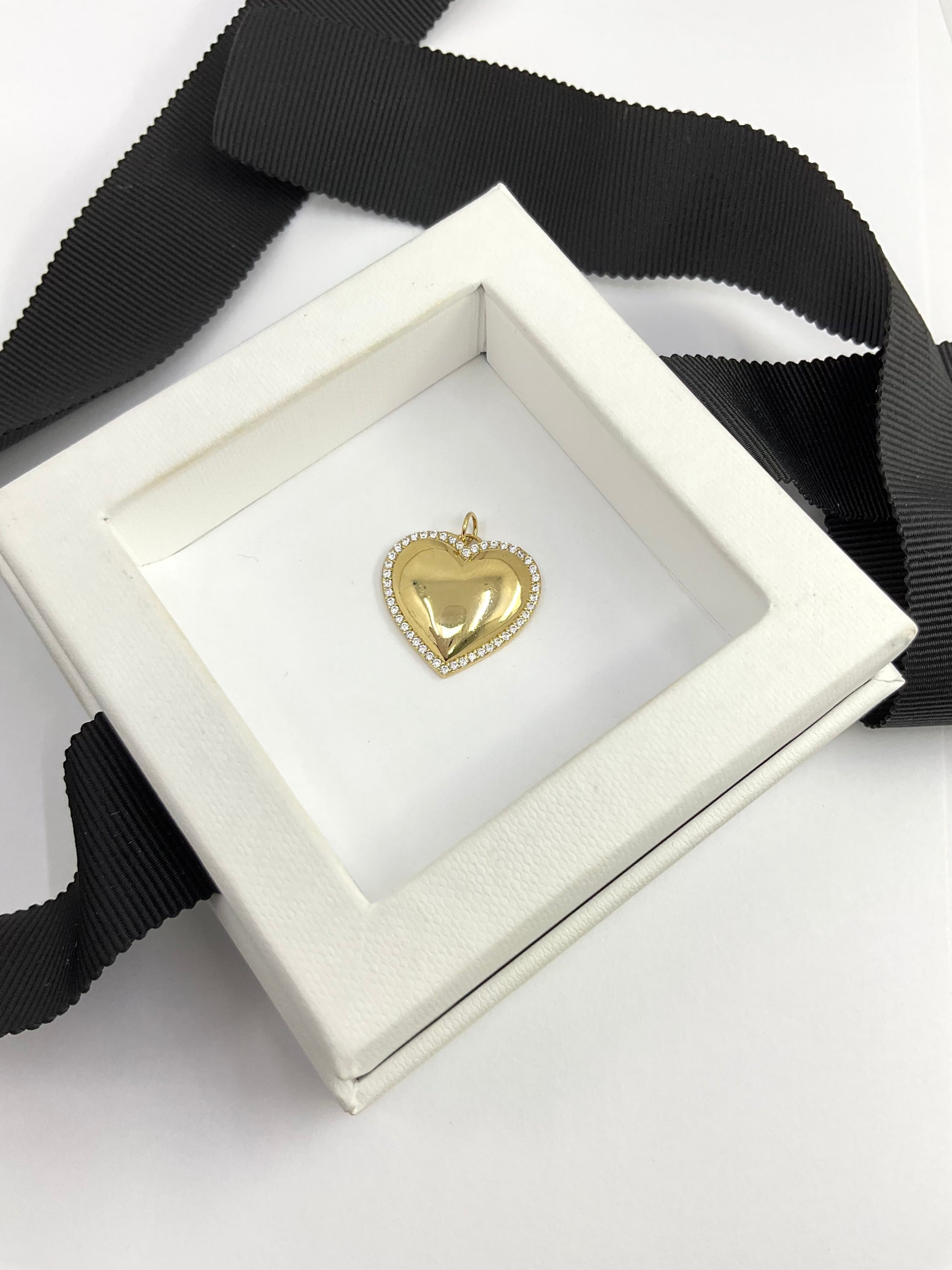 Spice up your jewelry collection with our 14K Gold Heart Pendant featuring sparkling Cubic Zirconia. This playful and luxurious pendant adds a touch of whimsy and glamour to any outfit. Plus, its sturdy 14K gold construction guarantees lasting shine. A must-have for any jewelry lover!