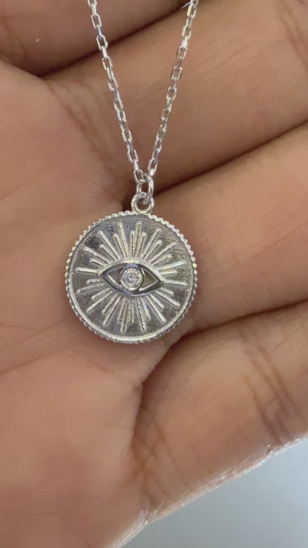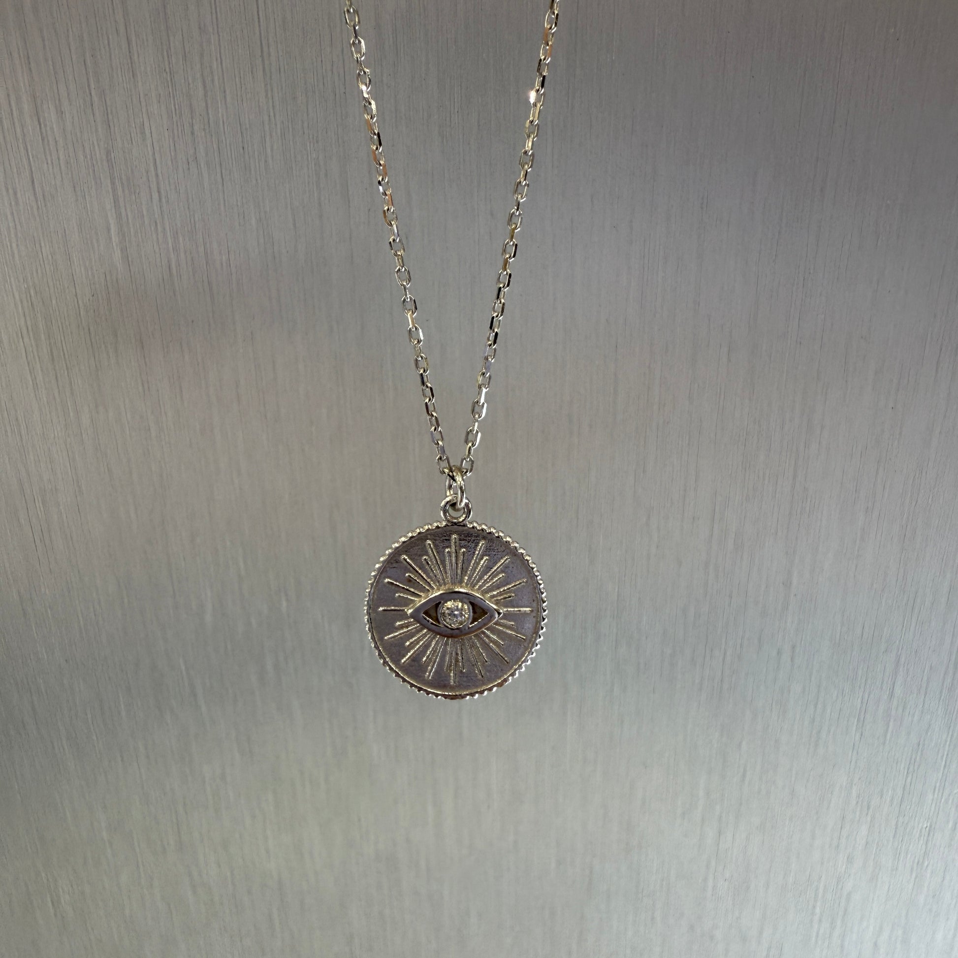 14K Gold Round Charm Necklace Eye with Natural Diamond