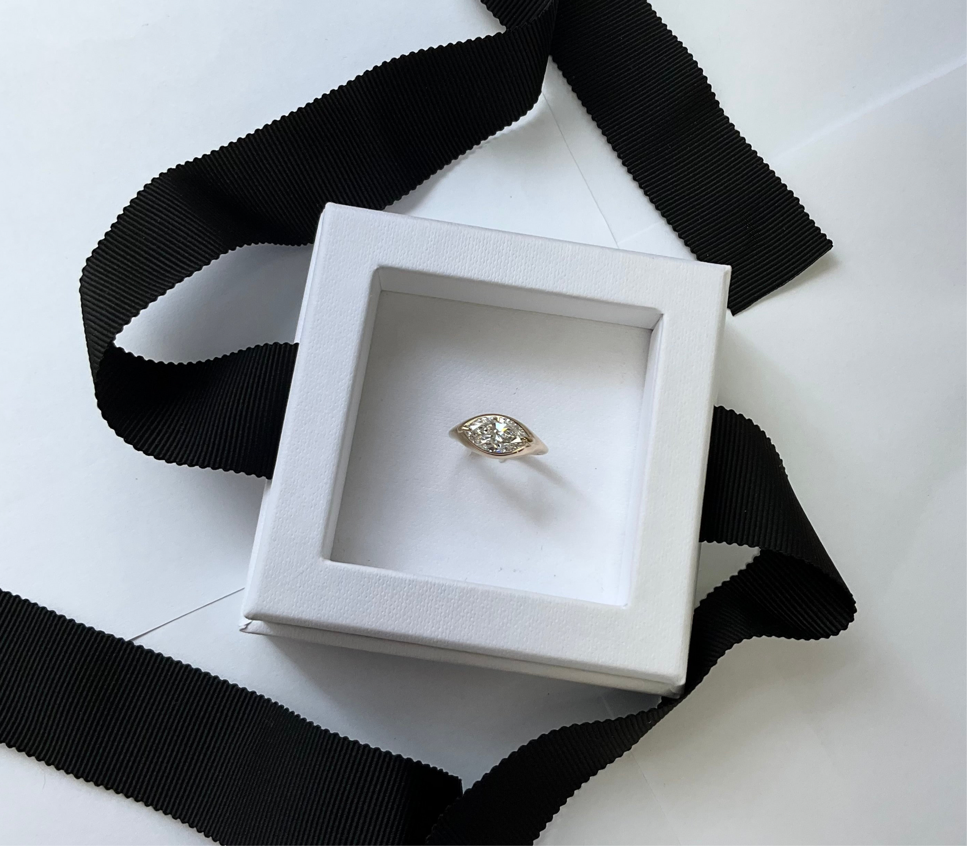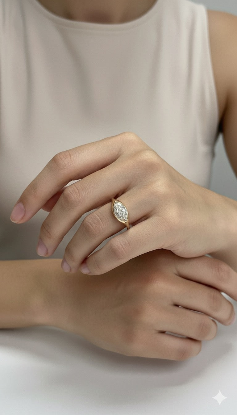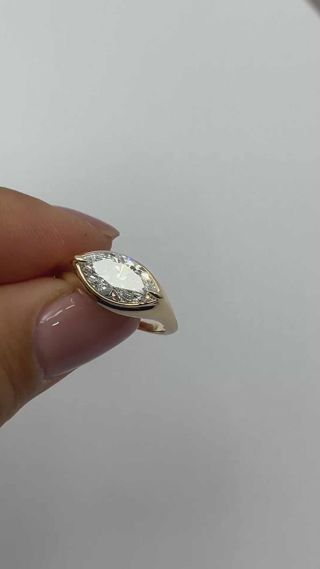 14KY Gold 1.38 Carat Lab Grown Marquise Diamond Pinky Ring