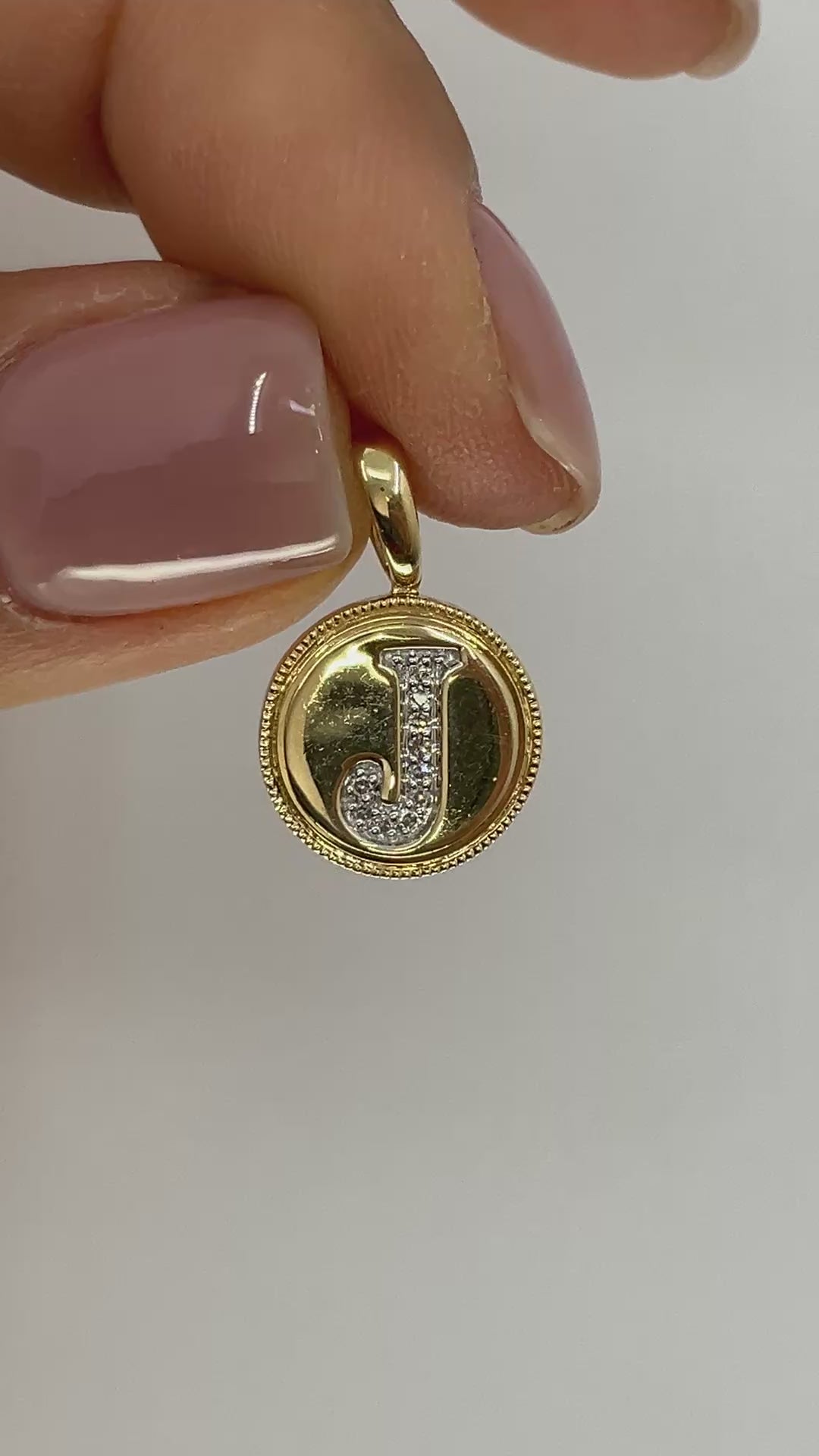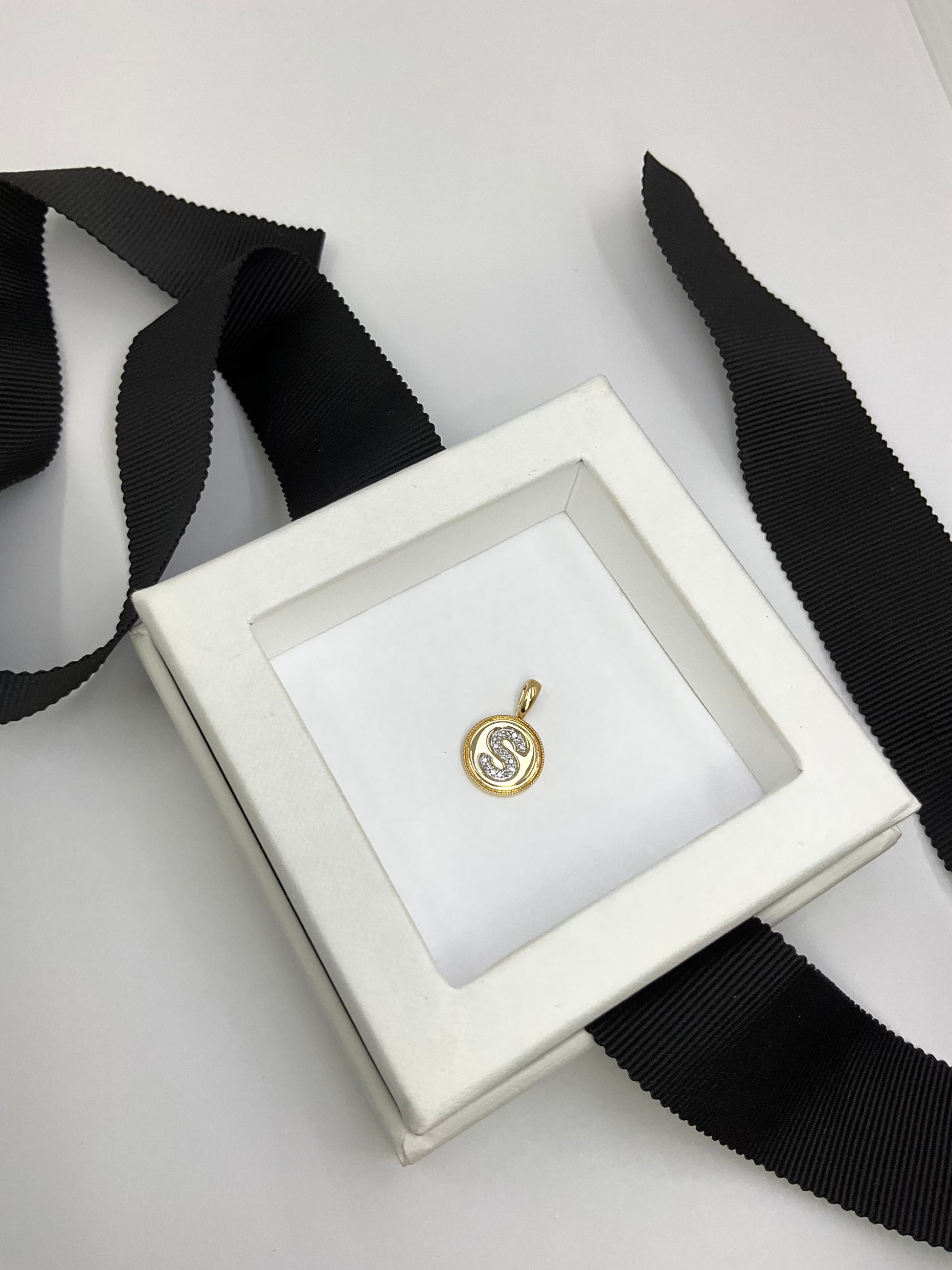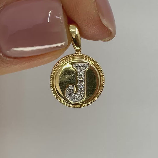 14KY Solid Gold Initial Pendant with Natural Diamonds