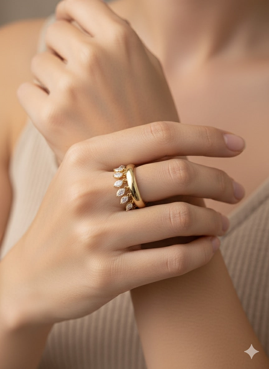 Gold Marquise Cut 1.00 Ctw Lab Diamond Ice Drop Ring
