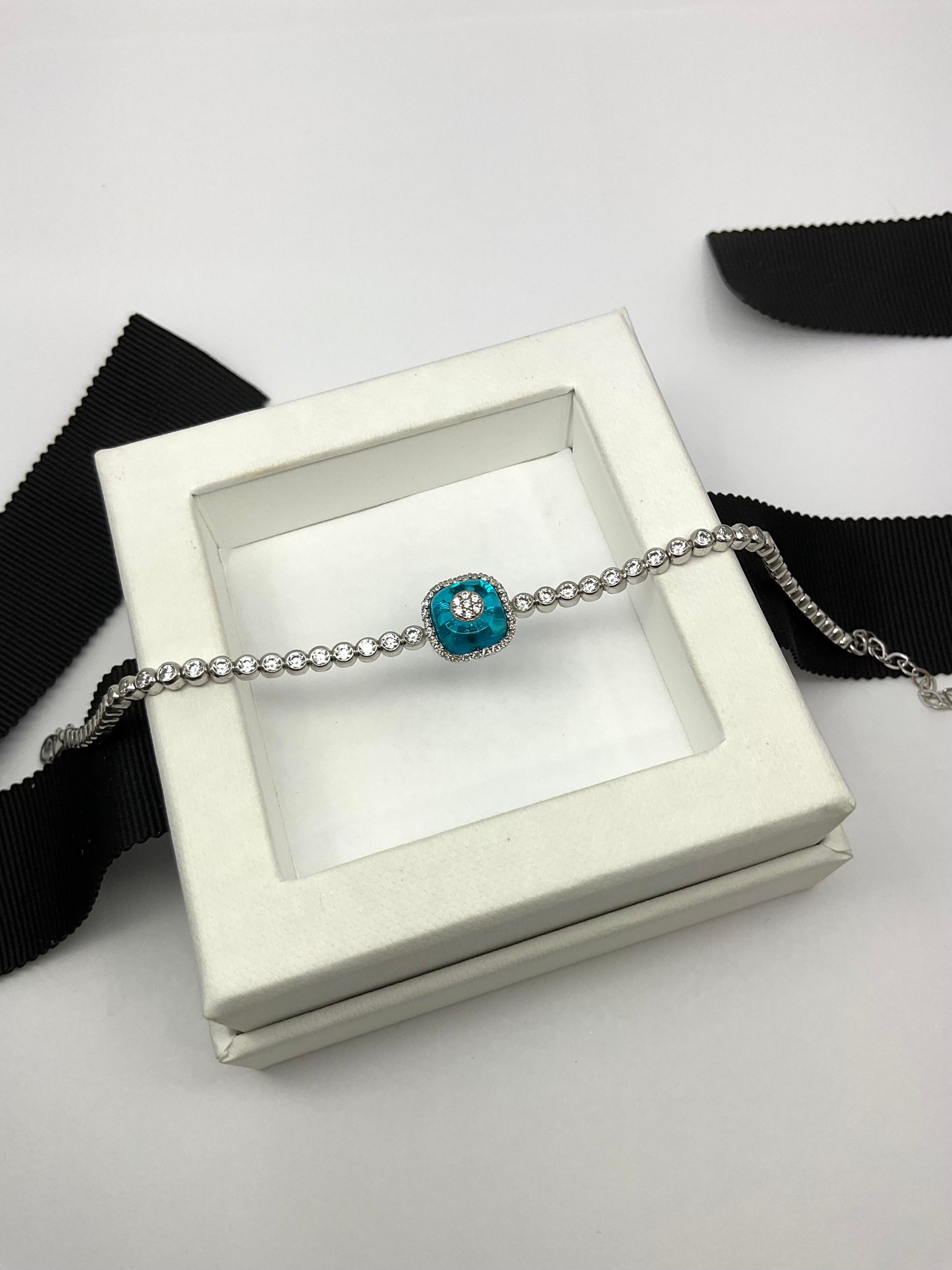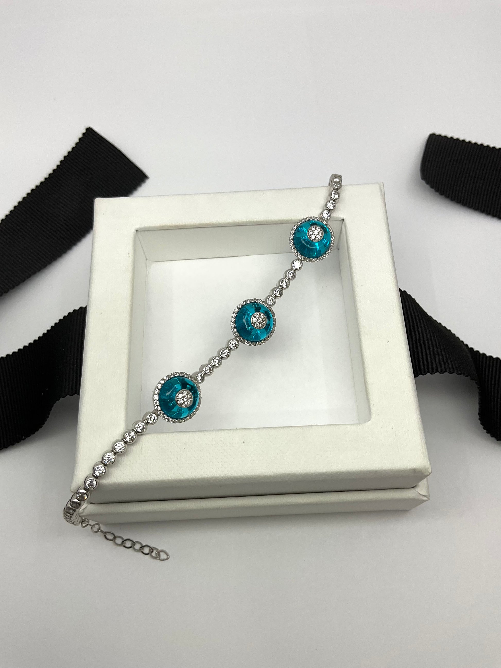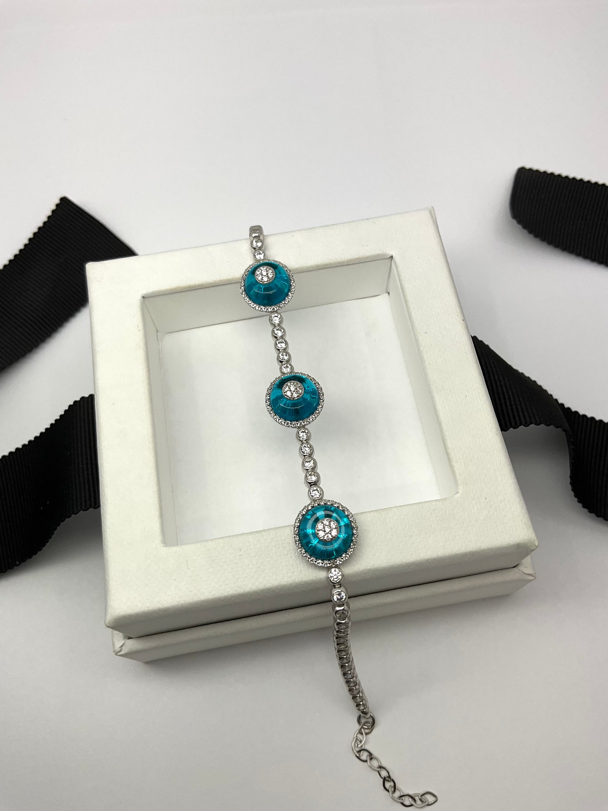 14KW Gold Evil Eye White Sapphire Bracelet