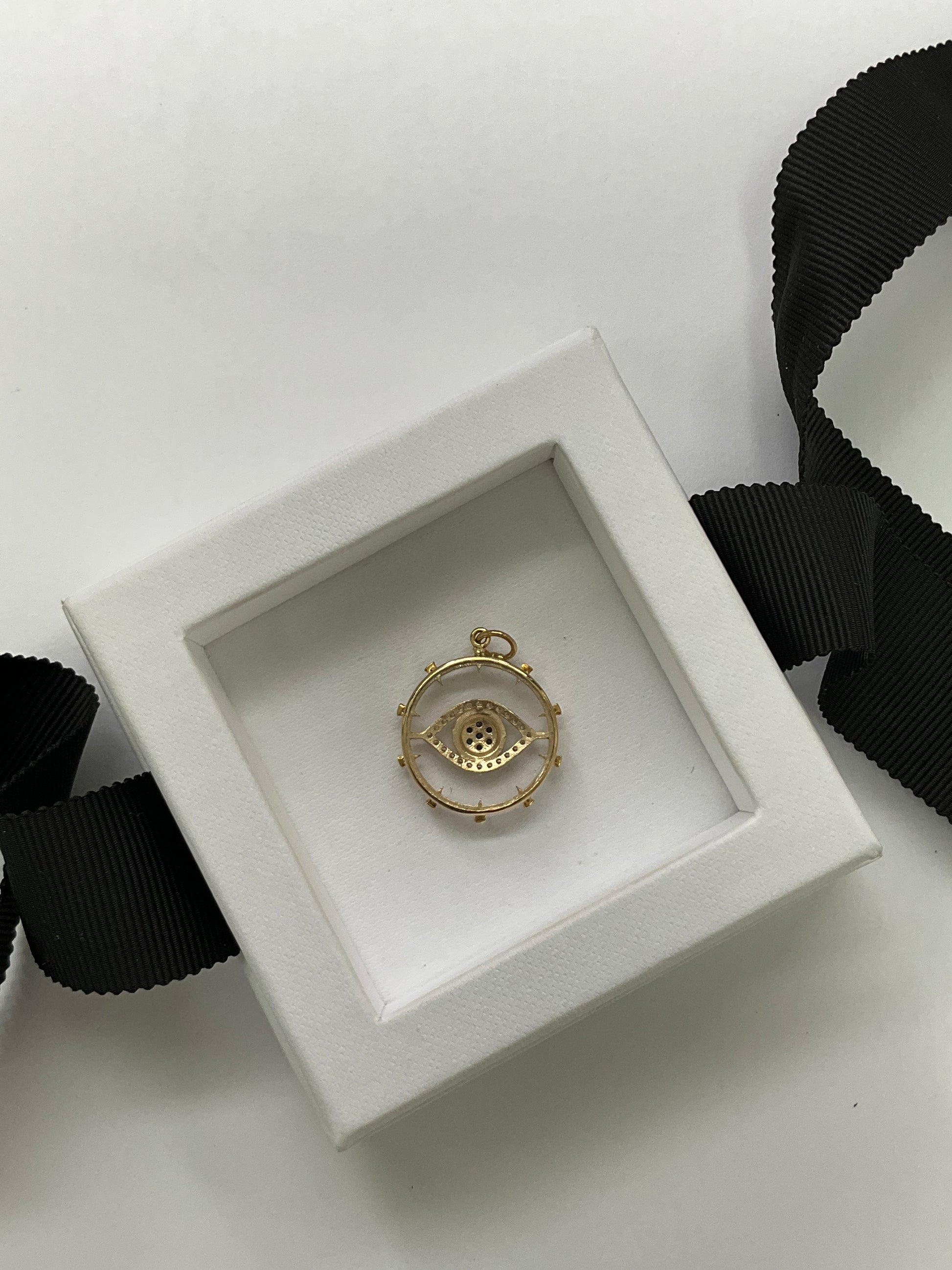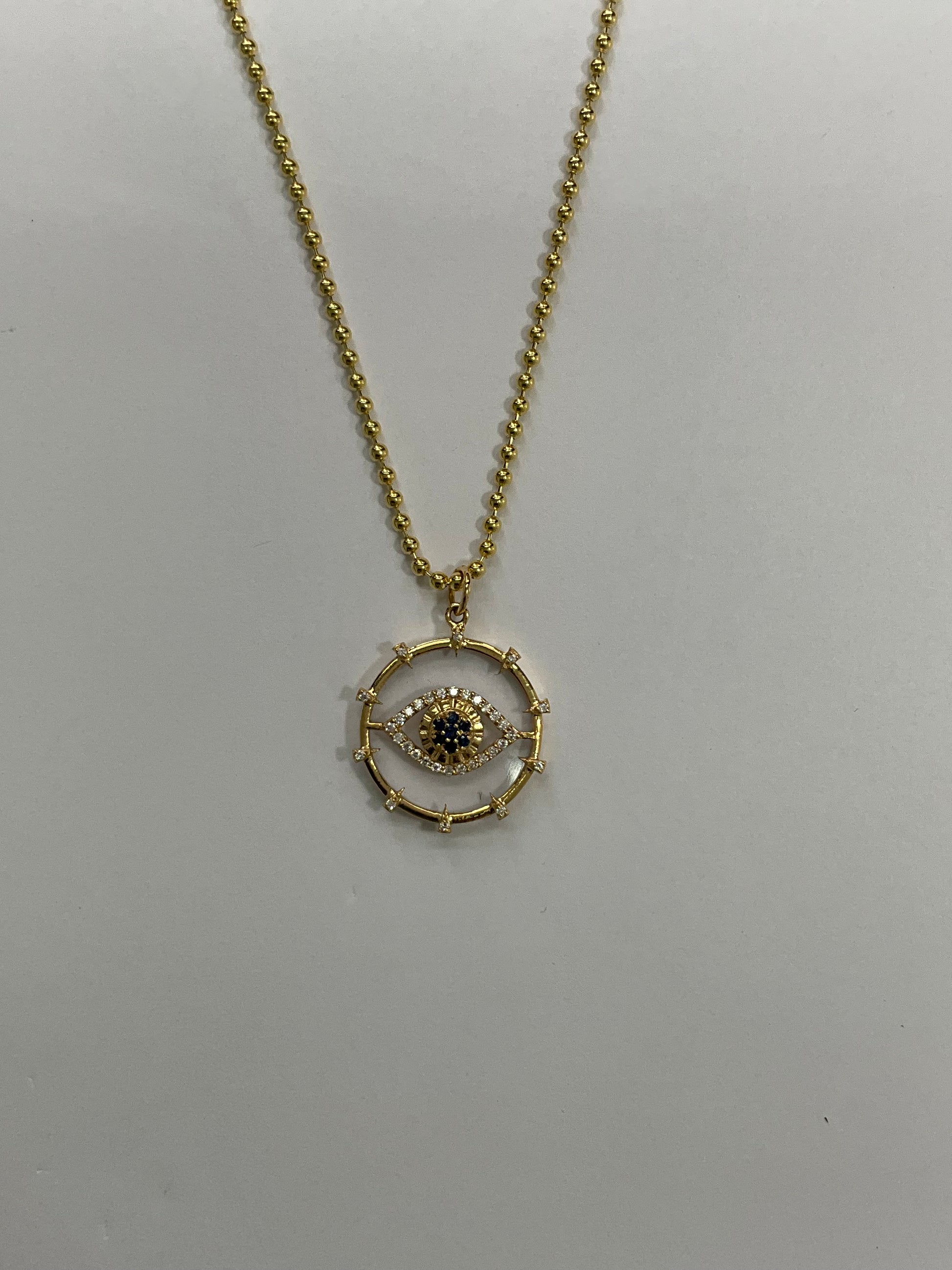 GoldGold Round Clear Quartz Evil Eye Medallion Pendant with With Gold And Sapphire