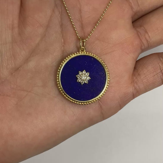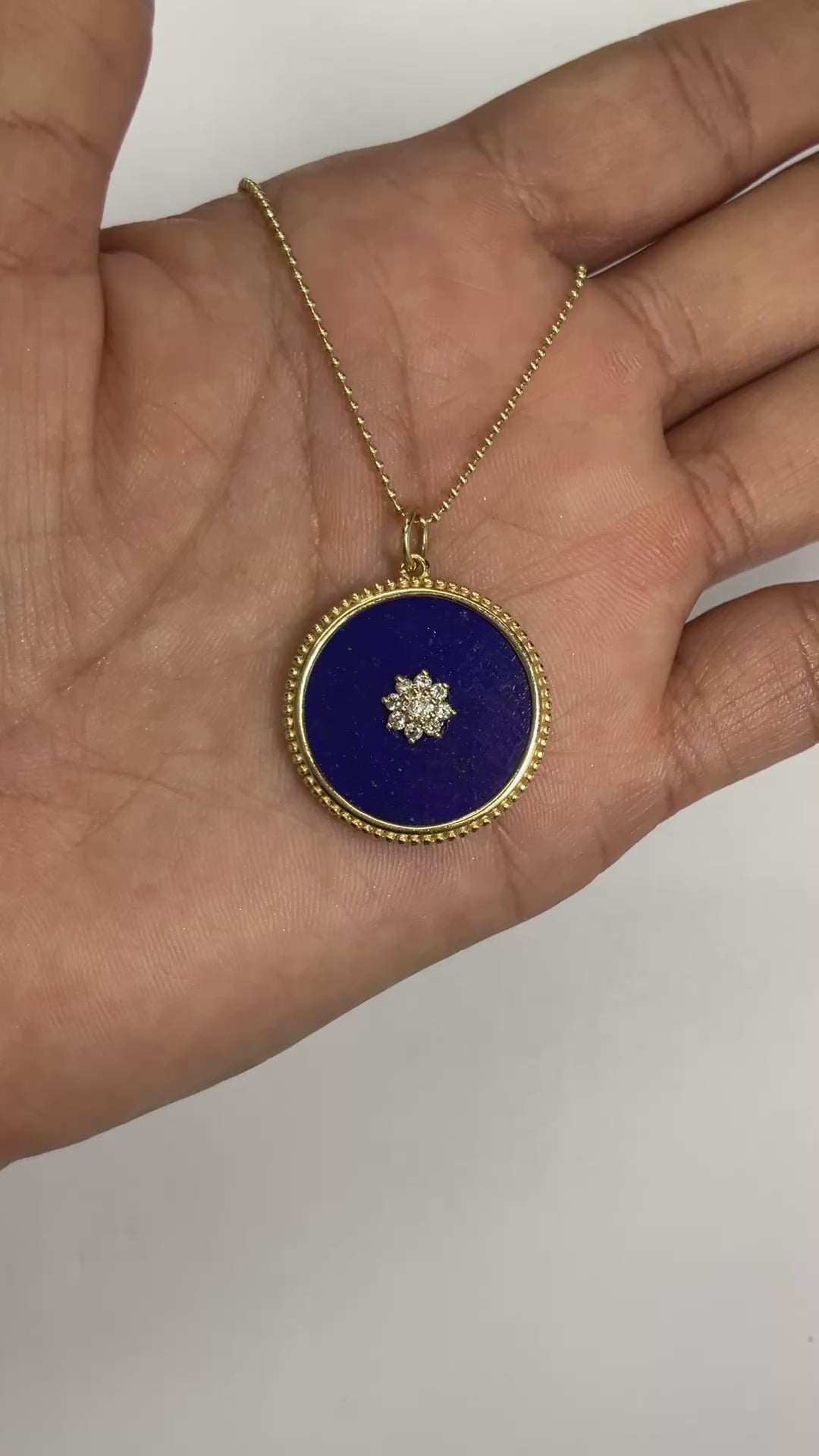 Gold Round Lapis Medallion Pendant with Diamond Cluster